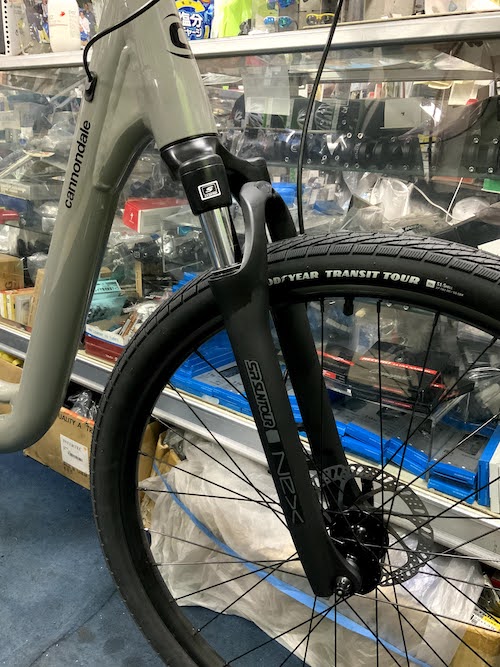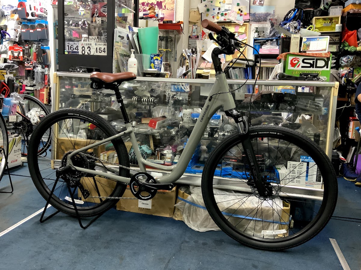 キャノンデールのラインナップのQUICKよりもライトなモデルになり、ハンドルはアップライトな設定でフロントサスペンション搭載で快適なクロスバイクになっています!