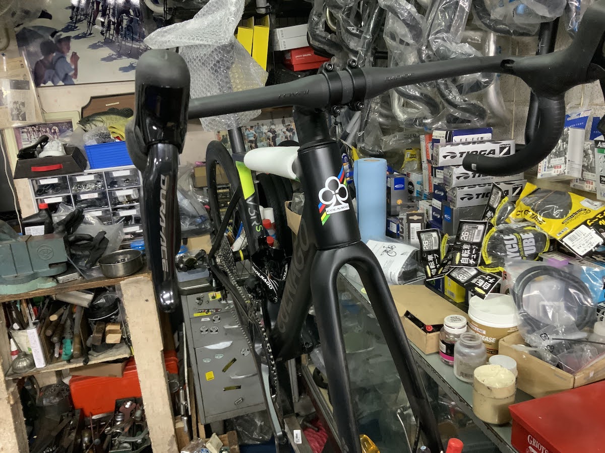 COLNAGO V3-RS 組み立て中 投稿者:ftakada2022年1月21日カテゴリー:Item お客様にご注文いただいているCOLNAGOのV3-RSをNEW DURA-ACEで組み立てています! クランクがまだ到着していないのでまだ完成していませんが、、、もう少しで完成予定! 組み上がるのが楽しみな1台です! 共有: クリックして X で共有 (新しいウィンドウで開きます) X Facebook で共有するにはクリックしてください (新しいウィンドウで開きます) Facebook いいね 読み込み中… 関連