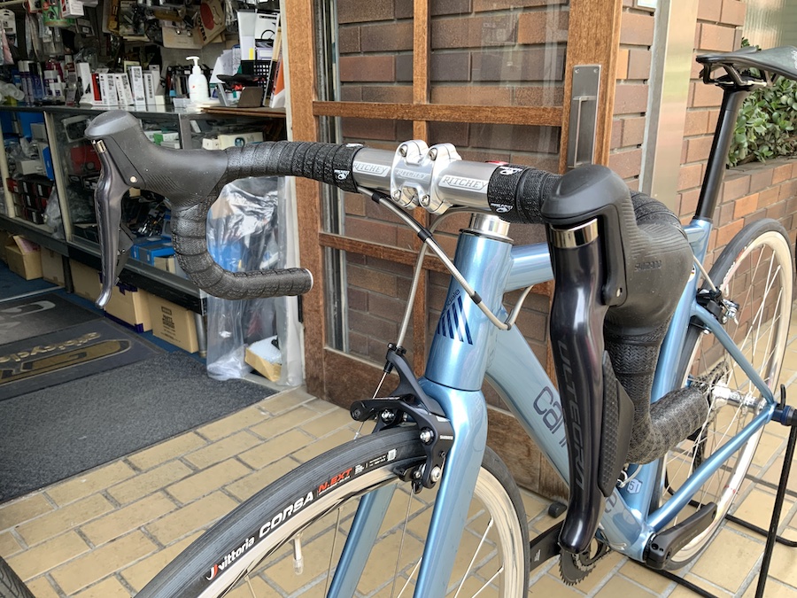 リムブレーキ仕様のフレームになり、コンポは12Sのシマノ アルテグラDi2をチョイスしています。